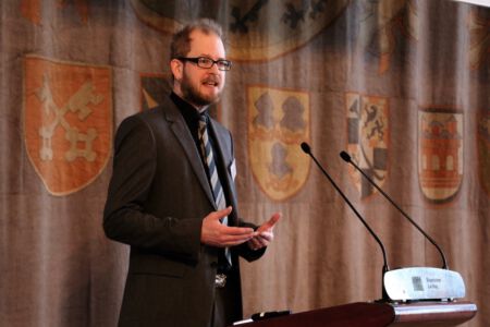 Dr. Christian Boeser-Schnebel (Netzwerk politische Bildung Bayern) beleuchtete die Problematik von Stammtischparolen und wies auf der Basis eines neuen Argumentationstrainings Wege auf, die aus der Falle des Kampfes von richtig und falsch zu einem niveauvolleren politischen Diskurs führen könnten. Anhand der aktuellen Flüchtlings- und Integrationsthematik zeigte er Eskalationsspiralen und deren Dynamiken auf und verdeutlichte Alternativdiskurse, die durchaus klare Positionierungen und demokratischen Streit enthalten, ohne aber in selbstgerechte Verabsolutierung zu verfallen.